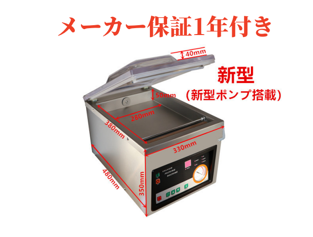 고성능의 신형 진공 펌프를 탑재해, 견고하고 깨지기 어렵게 했으므로, 식품(식육, 해산물, 가공 냉동 식품, 조림, 커피 콩 등)이나 전자 부품(공업 제품의 방진·방습· 방청에) 의료품이나 장기 등본은 물론, 카레, 절임 등 소량의 액체물(300cc 이하)도 진공을 할 수 있습니다.조작은 매우 간단하므로, 초보자도 안심하고 사용할 수 있습니다