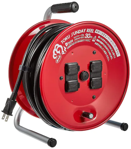 가정용 코드 릴 케이블의 굵기는 소형 1.25mm ~ 2mm 평방 미터 정도의 것이 많고, 다소 가벼운 분 다루기 쉽게되어 있습니다. 코드의 길이는 20m ~ 50m까지의 라인업이 선 용해 화재 방지 온도 센서가 붙어 있으면 안심입니다. 야외에는 또한 방수 기능이되어있는 것도 있습니다.