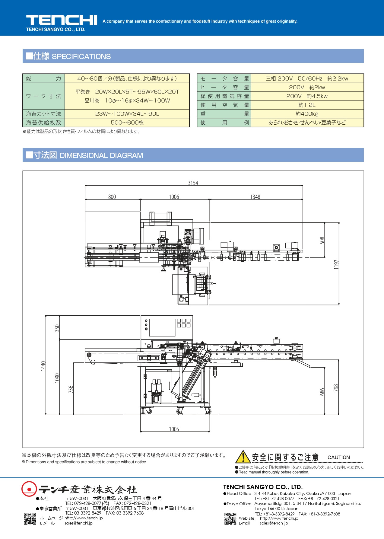 평권·시나가와 감기의 겸용성, 컴퓨터에 의한 10종류의 상품 관리로 간단하게 제품 체인지가 가능, 적온·적합 칼로리 스팀 장치에 의한 제품 품질 향상, 교환식 천 삽입 손톱에 의해 김의 비스듬히 붙이의 감소, 누름 컨베이어에 의해 건조 불필요한 제품화가 실현, 공간 절약·경량 설계.