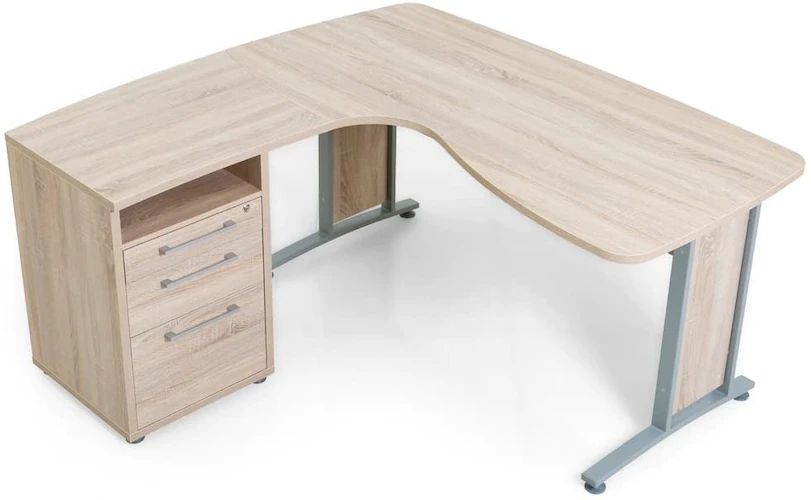 L자 타입은 몸의 한쪽을 둘러싸도록 천판이 설치되어 있습니다. 이름 그대로 L자형으로 되어 있어 스탠다드 타입보다 넓은 공간을 확보할 수 있습니다. PC나 프린터를 둘 수 있는 것은 물론, 큰 사이즈이면, 스피커나 리셋 모니터, 서류 넣어 등도 설치 가능합니다. 안쪽에 다리가 적기 때문에, 책상 아래에 왜건이나 캐비닛을 둘 수도 공간을 효과적으로 활용할 수있는 것이 장점.