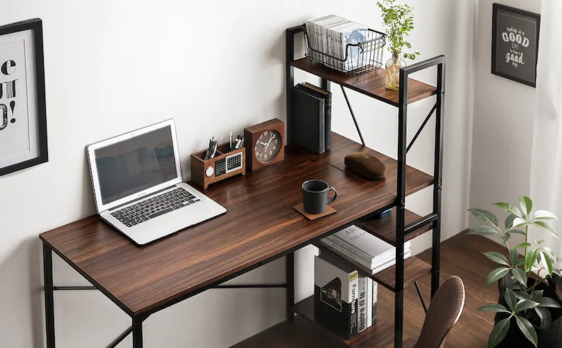 랙이있는 PC 데스크도 추천합니다. PC 작업으로 프린터를 자주 사용하는 경우 랙이 있으면 편리합니다. 앉은 채로 인쇄할 수 있어 효율적으로 작업을 진행할 수 있어요. 프린터는 의외로 장소를 차지하기 때문에, 랙이 붙어 있으면 책상 주위가 깔끔하게 정리하는 것도 메리트. 서류나 책, 소품류도 수납할 수 있고, 세련된 잡화를 두면 디스플레이로서도 활용할 수 있습니다.