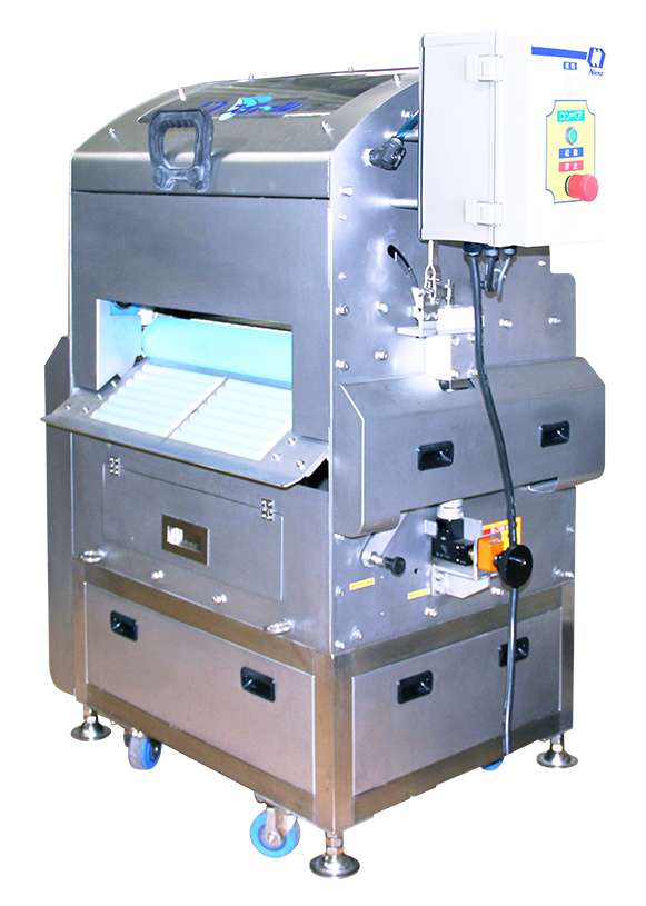 - 내용물이 부서지기 쉬운 워크에서도 안심 대상물이 부서지기 쉬운 경우라도, 그 내용물의 두께에 스폰지 롤러끼리의 간격을 자동 조정・고정 조정하기 위한 클리어런스 어저스터로 워크의 데미지를 보다 억제합니다.