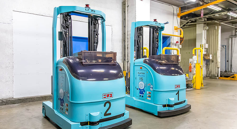 업계 최초의 마이너스 30℃ 대응 레이저 유도 무인 포크리프트.저온 환경하에서도 안정 동작으로 작업자의 부담을 경감해, 절인화를 실현.미래의 물류를 개척하는 혁신 기술