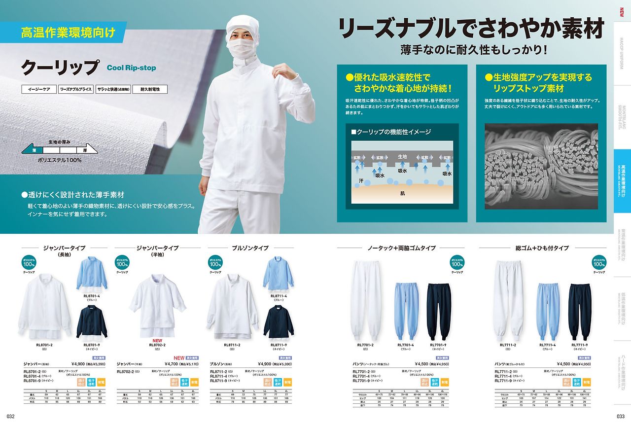 고내구성에 염가판!인기의 청량·위생 유니폼 쿨립 시리즈에 반소매 타입이 추가!