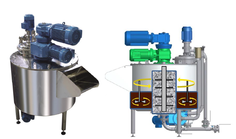 믹서, 볼 밀, 액체 콘치의 일체형 장치입니다.
