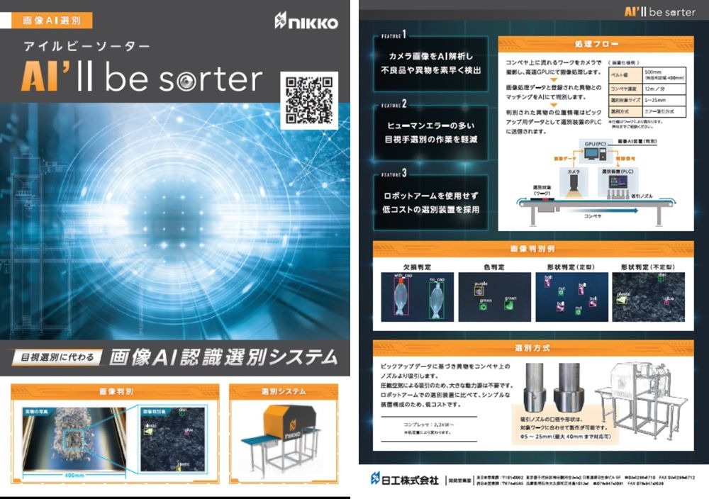 카메라의 화상과 기계 학습한 데이터를 AI로 매칭. 이물과 인식한 물건 을
