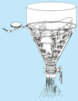 펄세이터 본체에서 발생하는 저주파 진동의 강력한 압축 에어 펄스를 탱크 안으로 불어넣어 분립체를 확산시킵니다.