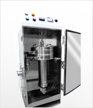 121℃의 증기압에 견딜 수 있도록, 베어링부에 메카니컬 씰을 사용한 SIP 대응 타입입니다. 운전 중에 밀폐를 유지할 수 있기 때문에 무균 처리도 가능합니다. 또, 클린 룸은 안전 캐비닛 안에 설치할 수 있도록, 회전통이 횡전하는 타입도 준비하고 있습니다.
