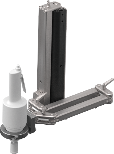 】 【바리에이션】 ・공구의 하중에 맞추어 2 타입으로부터 선택 가능 사이즈 L ~ 5 kg, 사이즈 H ~ 15 kg 【자유롭게 움직이는 다관절 암】 ・수평 방향으로 플렉시블하게 움직이는 암에 의해 노린 위치에서의 체결 작업이 가능 ・ 관절부 는 간이적인 로크 기구를 장비 【 진동이나 반력을 억제하는 안전 구조 】 CKD 독자적인 저접동 실린더를 탑재해, 작은 힘으로 조작이 가능 구동부 에 탄성체를 사용하고 있지 않기 때문에, 임의 위치에서 위치 유지가 가능 수직 방향으로 움직이는 가이드를 탑재하고 있어, 부드러운 작업을 실현