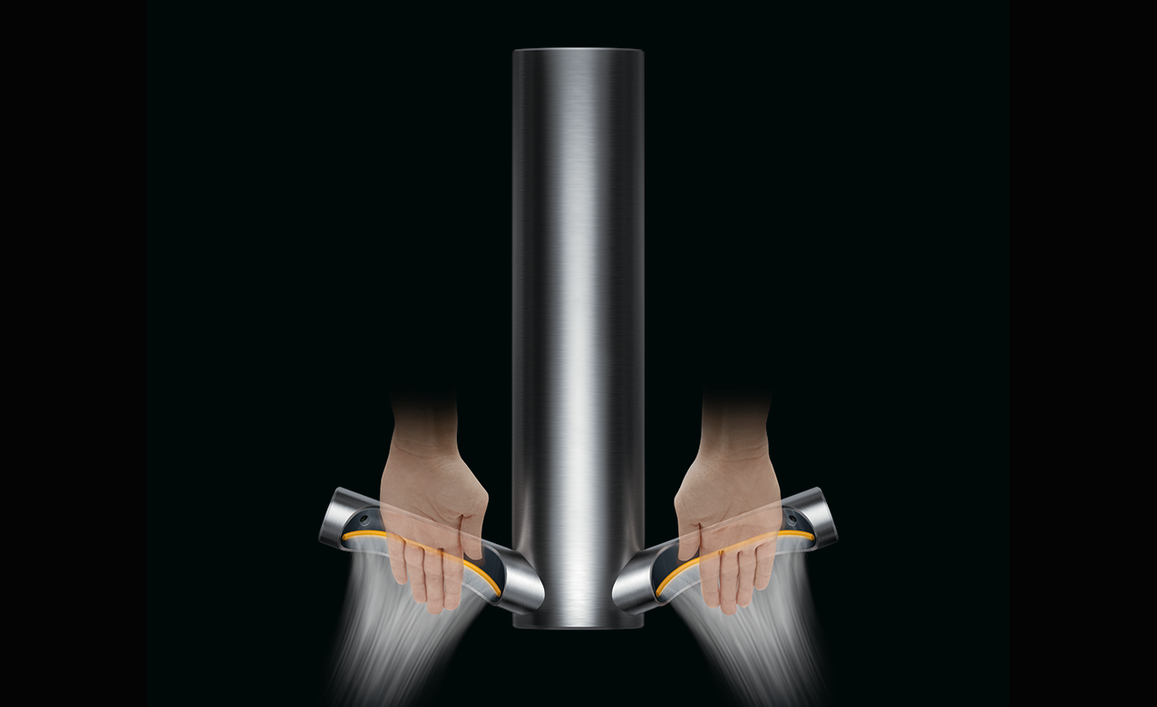 Dyson Airblade V는 HEPA 필터를 통한 위생적인 공기가 0.8mm인 개구부에서 초당 최대 35리터 분출합니다. 시속으로 675kg의 시트 모양의 바람으로 와이퍼처럼 손에서 물을 긁어내고 최대 12초로 손을 말립니다.