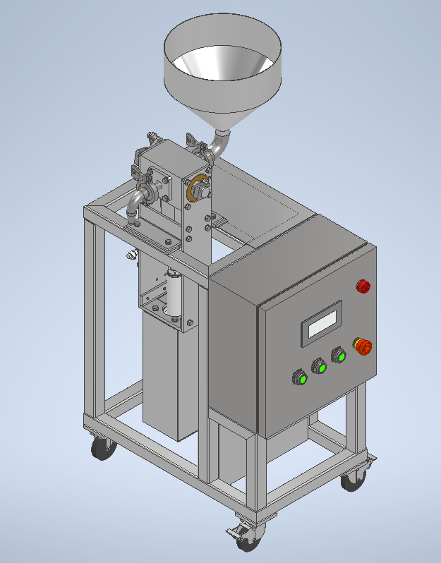 버킷 내에 분체 등의 제품을 투입 후, 전동으로 버킷이 상승하여 후공정이 되는 탱크 등에 제품을 공급합니다.