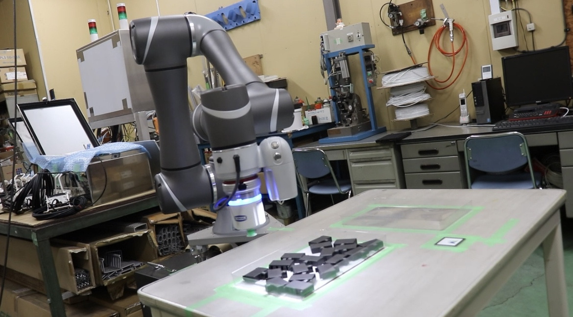 텍맨 로봇(TM5)으로 제품을 정렬합니다. 표준 탑재 카메라와 랜드마크를 사용하여 다양한 장소에서 여러 작업을 수행하기 쉽습니다.