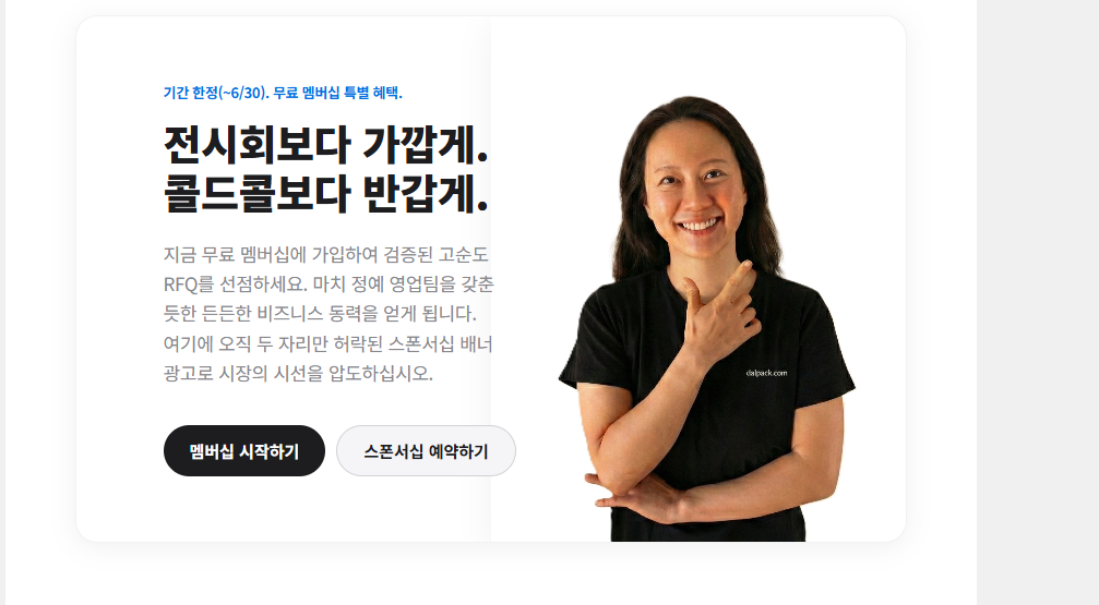 dalpack.com 무료 멤버십 가입 및 매칭 확인하기📌 요약: 이런 B2B 기업에게 강력히 추천합니다!