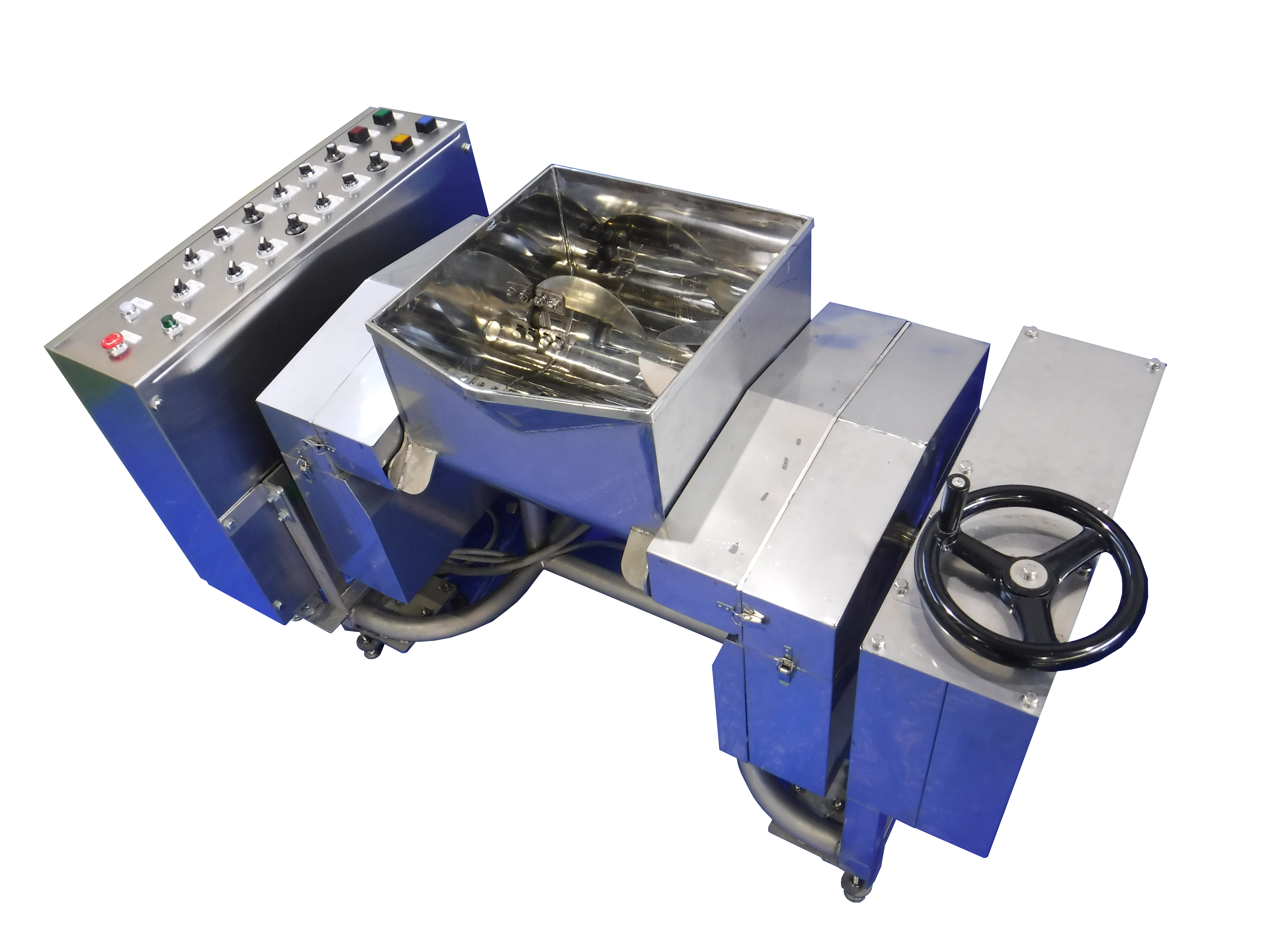 4축 패들 믹서는 4개의 독립 제어 구동 축을 통해 다양한 혼합 작업을 하나의 믹서로 수행할 수 있습니다. 확산, 반죽, 늘이기 등 다양한 혼합 방식을 하나의 장비에서 구현하여 작업 효율성을 극대화하고 생산성을 향상시킵니다. 특히, 반죽과 같은 고점도 재료에 조미료 등을 균일하게 혼합하는 데 뛰어난 성능을 발휘하여 식품 산업에서 널리 활용됩니다.