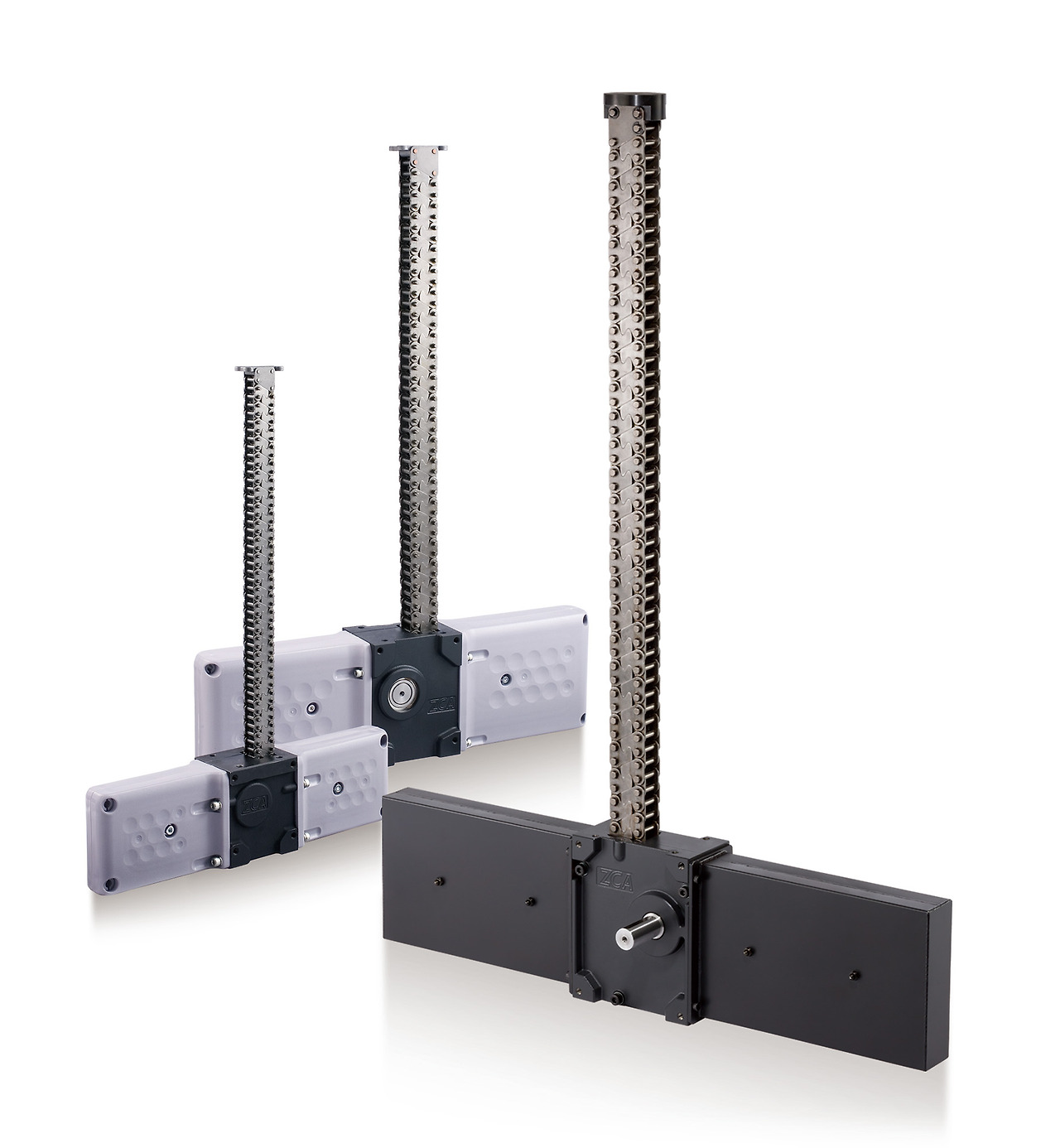 맞물림 체인(Zip 체인)은, 2개의 체인이 지퍼와 같이 맞물려, 1개의 견고한 막대 모양이 되어 「밀어・끌어당김」을 할 수 있는 당사 독자 개발의 체인 입니다