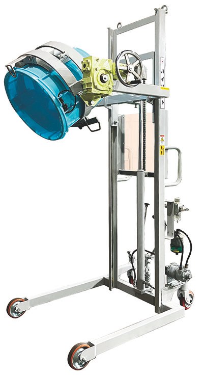 다양한 모양의 드럼 캔을 들어 올리고 반전하고 부드럽게 내용물을 안전하고 깨끗하게 투입할 수 있습니다.