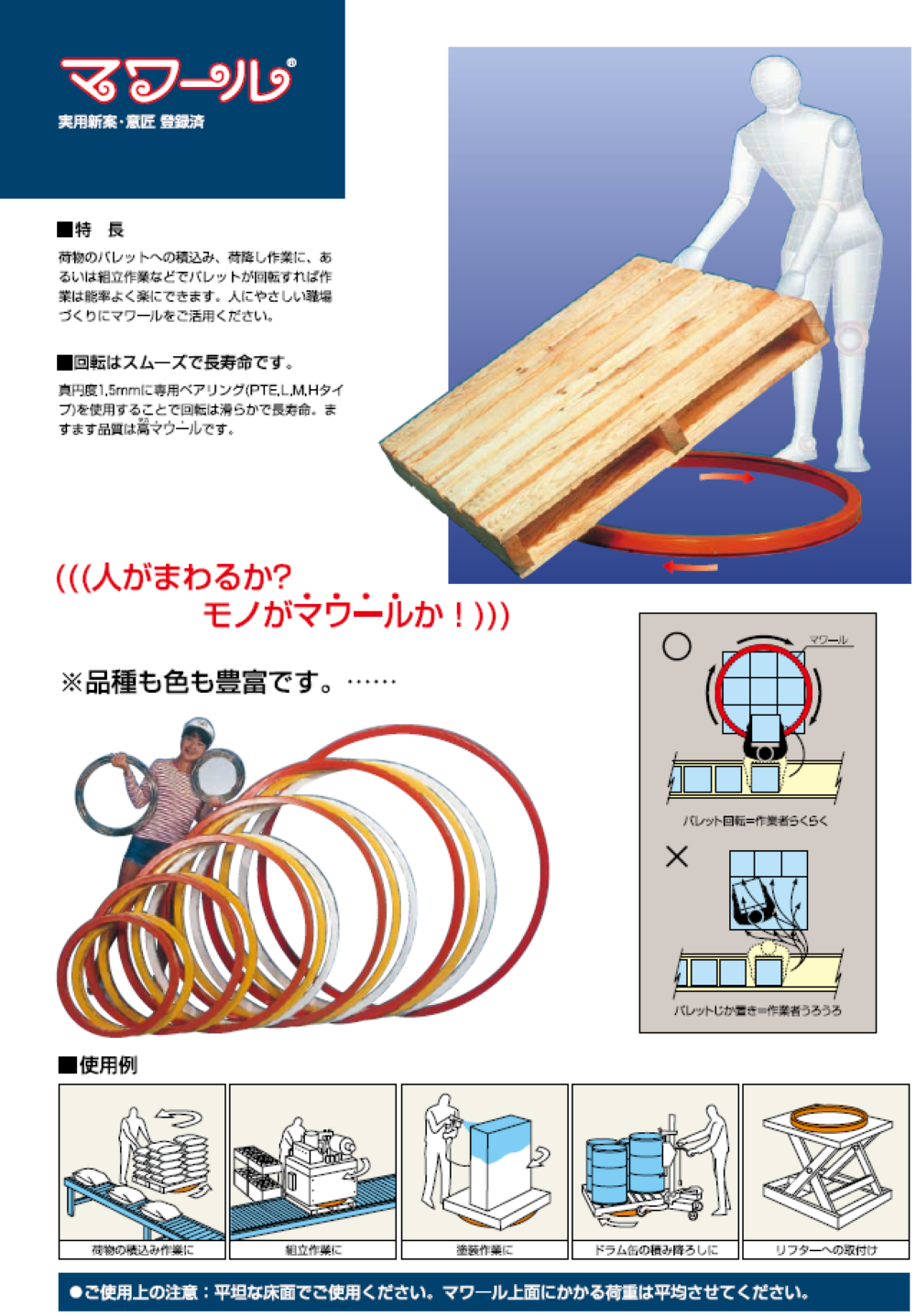 짐의 팔레트에의 적재 하역 작업에 팔레트가 회전하면 작업은 능률 좋게 편하게 할 수 있습니다