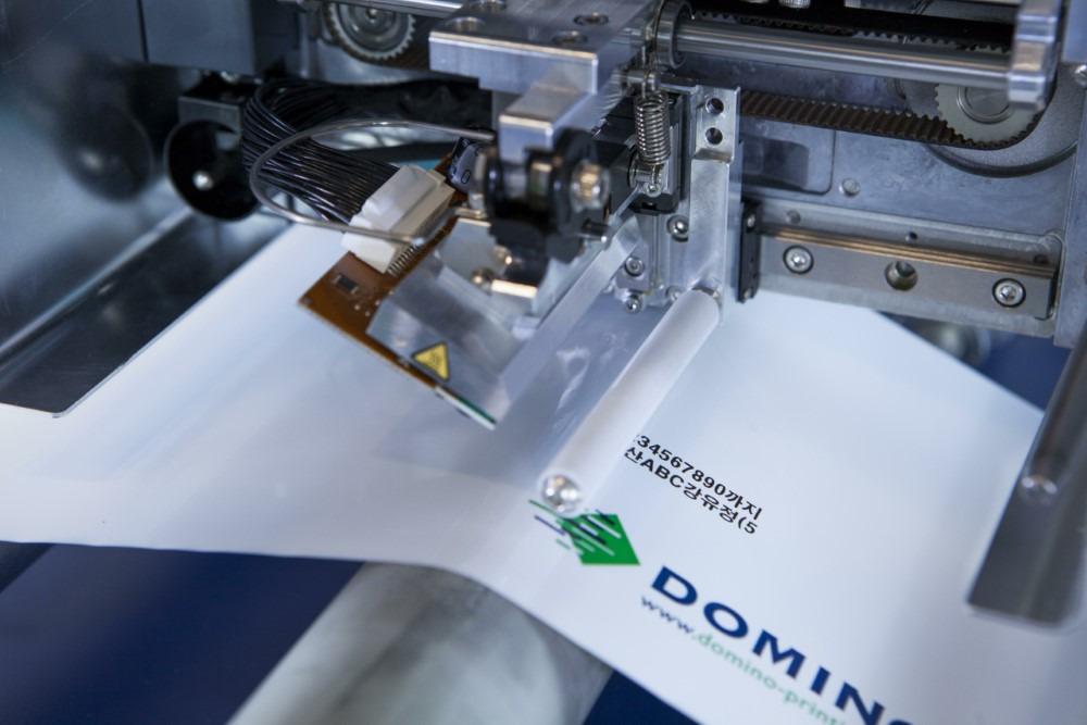 『도미노 Vx시리즈』는 포장기에 장착해 식품 포장 필름 등에 일자나 바코드, 원재료・내용・영양 성분 등을 인쇄하는 서멀 프린터입니다.미들 레인지 클래스에서는 업계 제일의 인쇄 속도로 전 모델보다 리본 교환이 대폭 간단하게 되었습니다