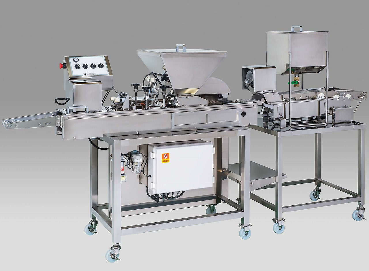 - 폐사 독자적인 프레스 기구 탑재로, 재료의 주위 전체에 흠뻑 균일한 빵 가루를 실시합니다.