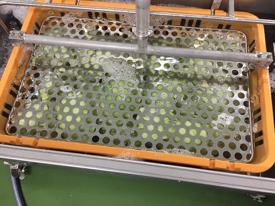 파, 부추 등 물에 떠있는 재료를 확실히 수중에 가라앉히고 버블링 세정을 실시합니다.